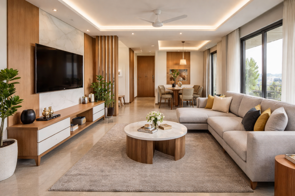 We design modern family homes in Pune and Pimpri-Chinchwad, creating stylish and functional interiors tailored for everyday living.
